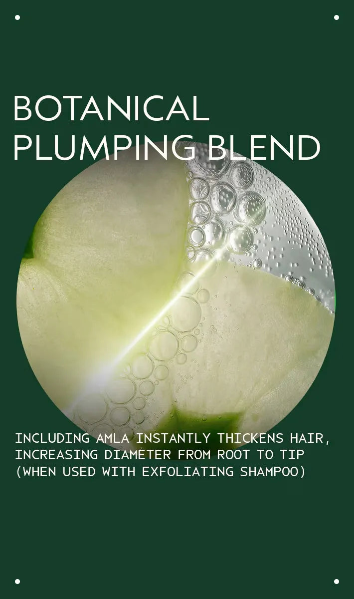 Conditions and instantly thickens medium to thick hair with a botanical plumping blend, increasing diameter from root...